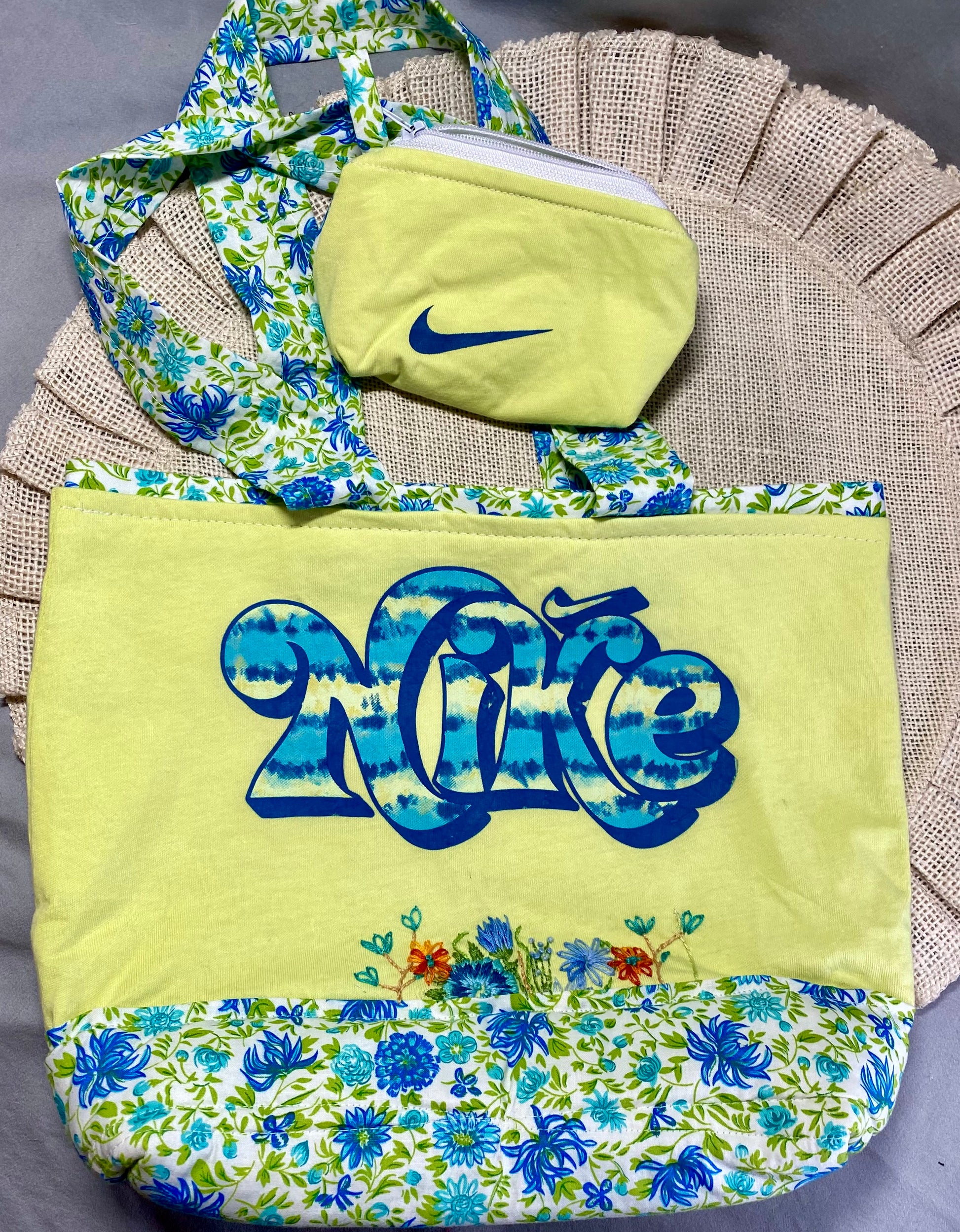 Add a touch of soft charm to your accessories collection with our Vintage Floral small tote and matching mini. Hand embroidered flowers will make a statement wherever you go. (Small bag, big style!)
